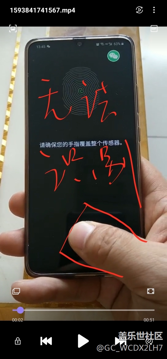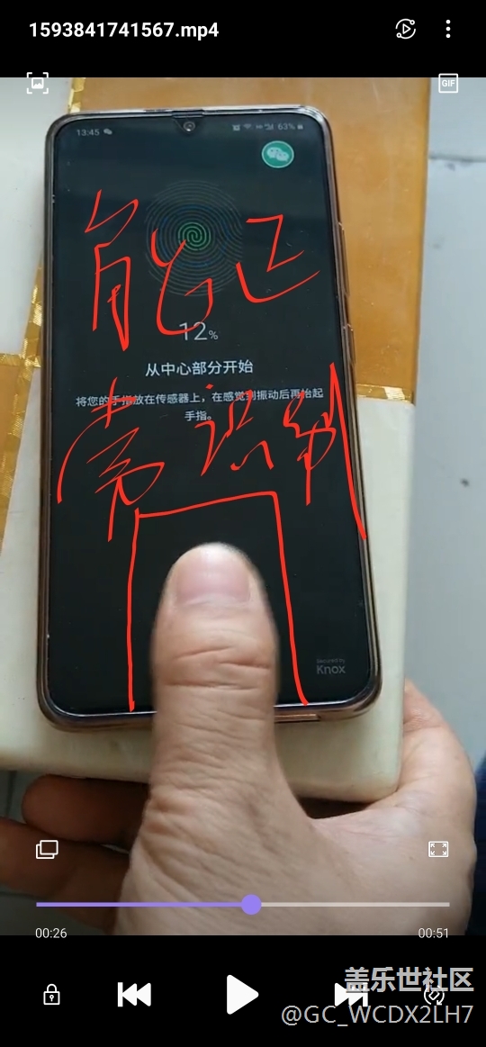 本來(lái)是錄了一個(gè)視頻,可惜發(fā)不了視頻,只好截2圖,可以看岀,當(dāng)一個(gè)手正常拿手機(jī)的時(shí)候,按壓指紋區(qū)拇指是斜著的圖1,指紋根本識(shí)別不出來(lái),當(dāng)把手機(jī)放桌上,拇指與手機(jī)邊框平行,垂直按壓圖2,反到能正常識(shí)別,由此可見(jiàn),要想指紋好用,必須兩手操作手機(jī),一個(gè)手拿手機(jī),另一個(gè)手拇指放垂直了才行,m的,三星這設(shè)計(jì)真服了,