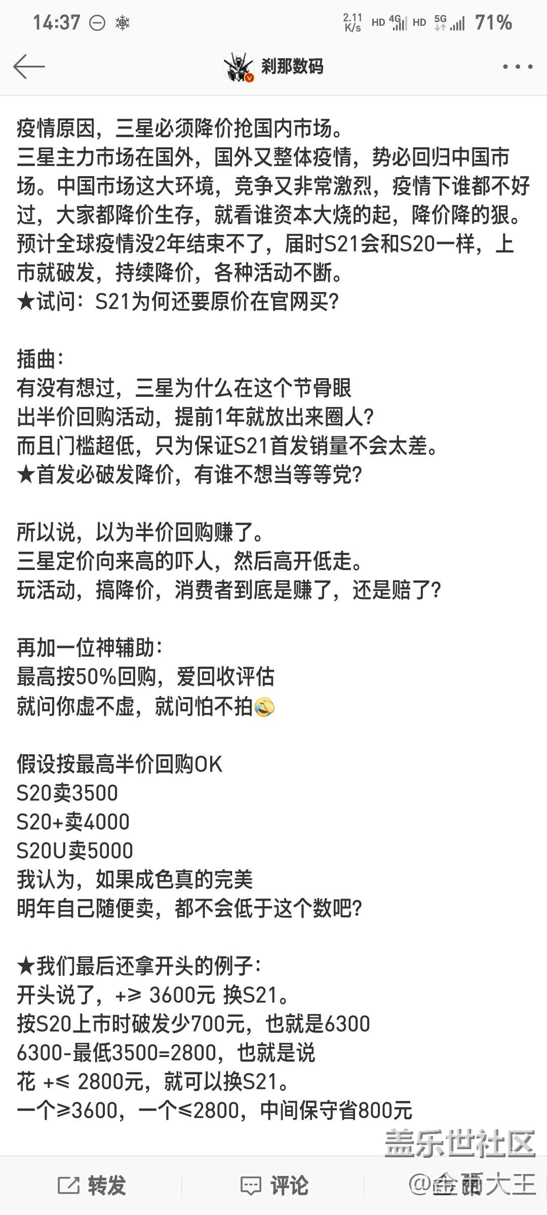 剎那數(shù)碼關(guān)于s21保值換新計(jì)劃的分析. 圖片