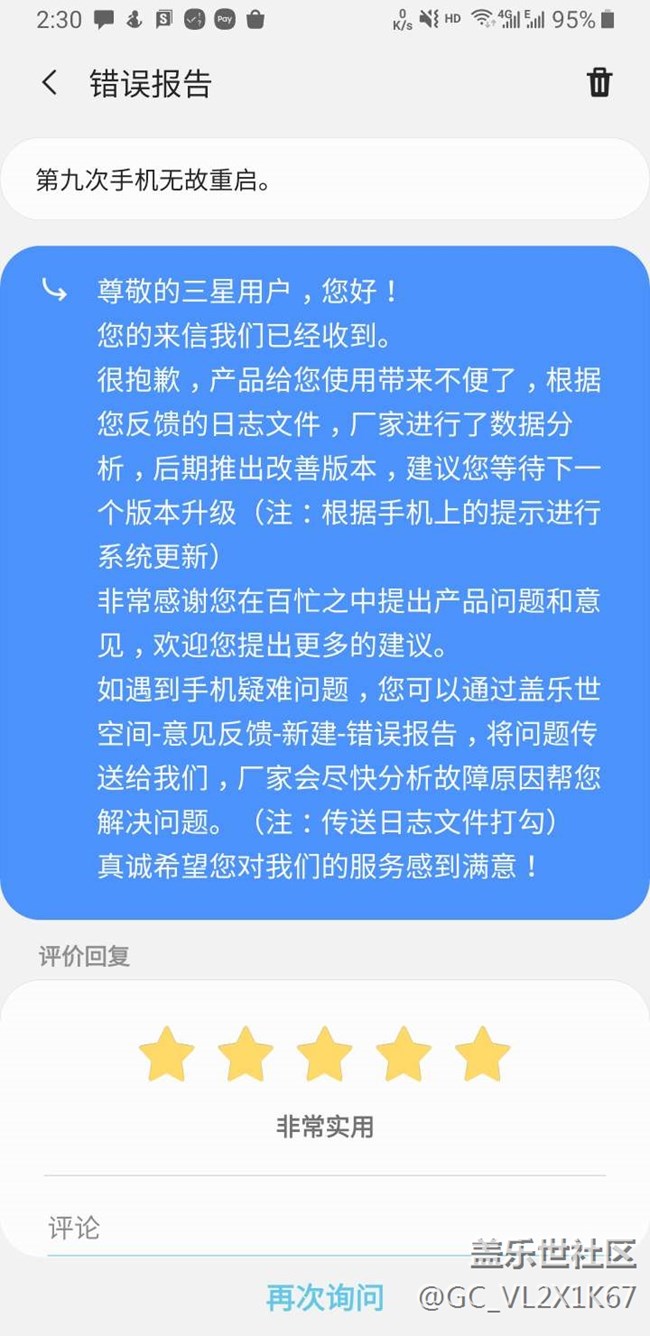 三星每次回復(fù)我都是扯淡。這次回復(fù)說了點(diǎn)人話。 圖片