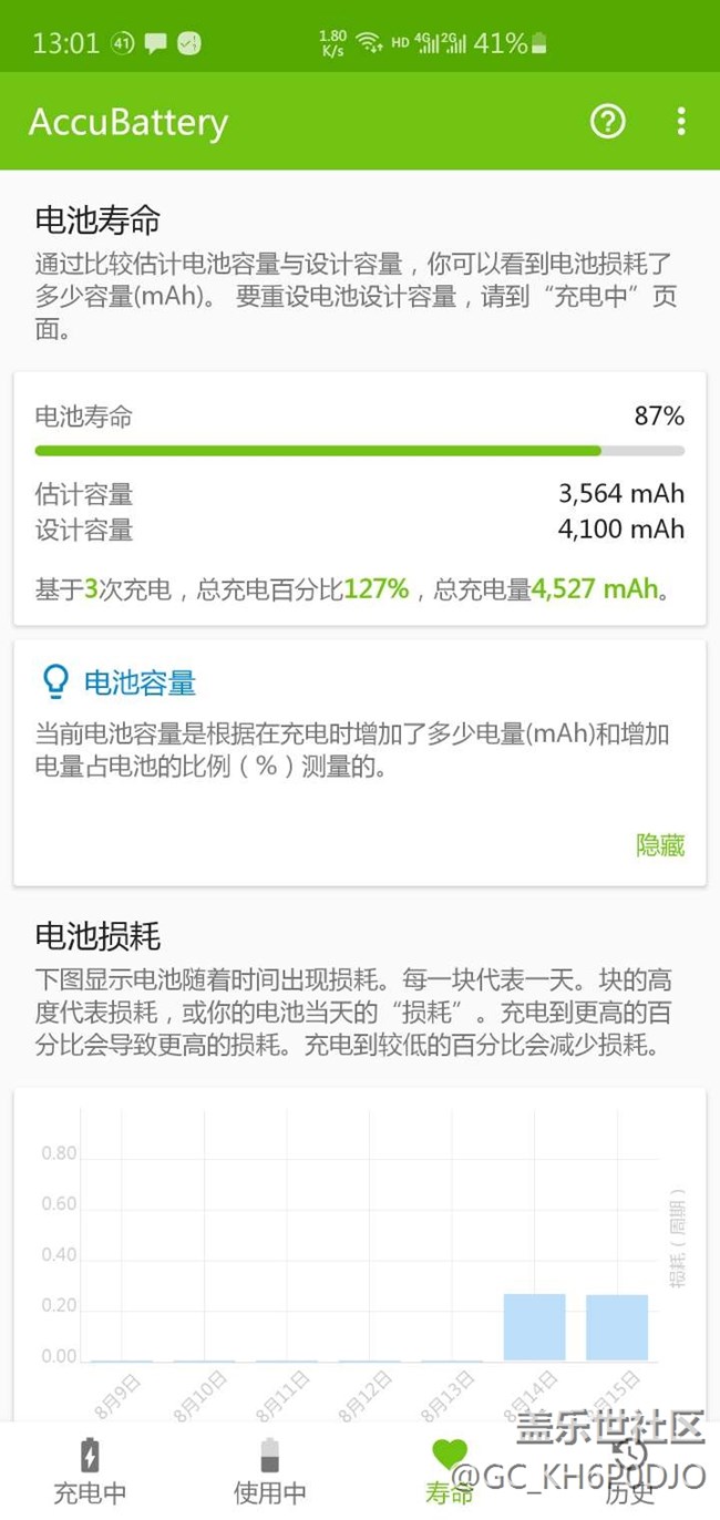 用這個(gè)軟件測(cè)的,想問問大家有必要換電池嗎,現(xiàn)在基本一天兩充。官方商城我看有一個(gè)半價(jià)換電池的活動(dòng)