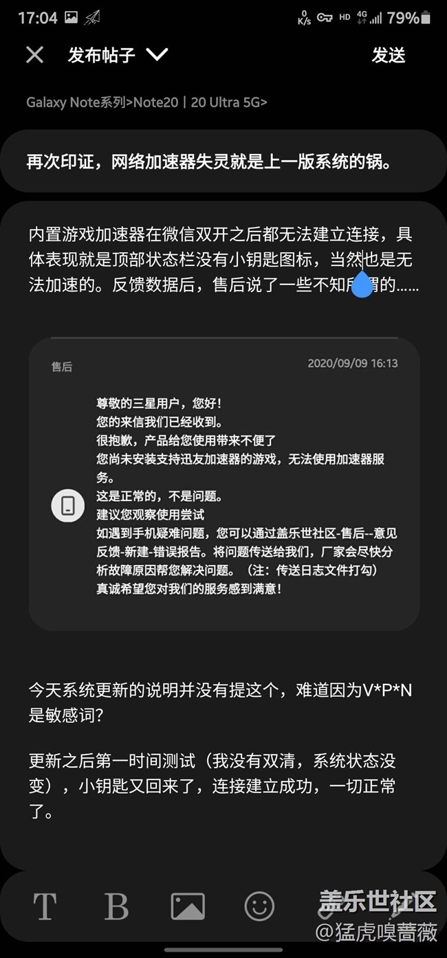 再次印證,網(wǎng)絡(luò)加速器失靈就是上一版系統(tǒng)的鍋。 圖片